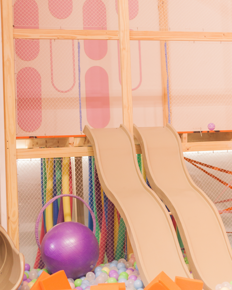 Finalmente, y como no podía faltar, también diseñamos una encantadora cafetería para que las personas adultas puedan encontrarse, distenderse y disfrutar mientras sus peques se divierten acompañados y de forma segura.